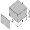 Caja de plástico sobre medida compuesta de 2 paneles ensamblados sobre 1 pieza en U (desarrollada ) y 1 tapa /puerta atornillada. fijada por una bisagra o deslizada. La tapa /puerta es desmontable manualmente o con una herramienta de tipo desarmador.